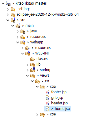 home.jsp는 기본적으로 src/main/webapp/WEB-INF/views에 있다.